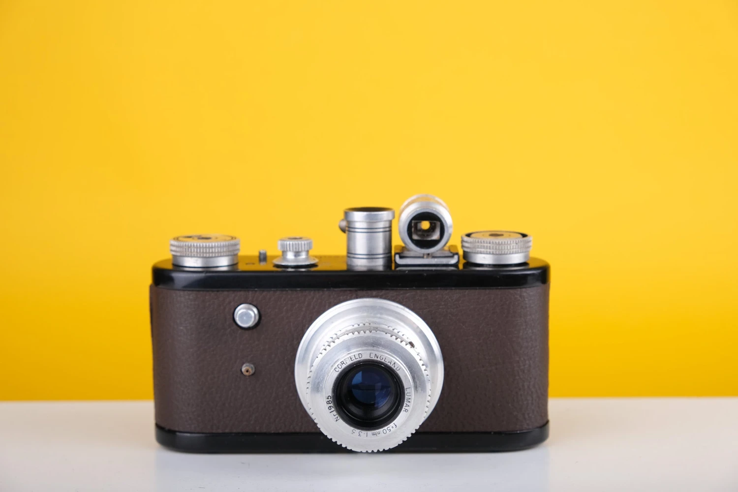 - Sold with a Corfield England Lumar f-50mm 1:3.5 standard lens in a bright aluminium barrel