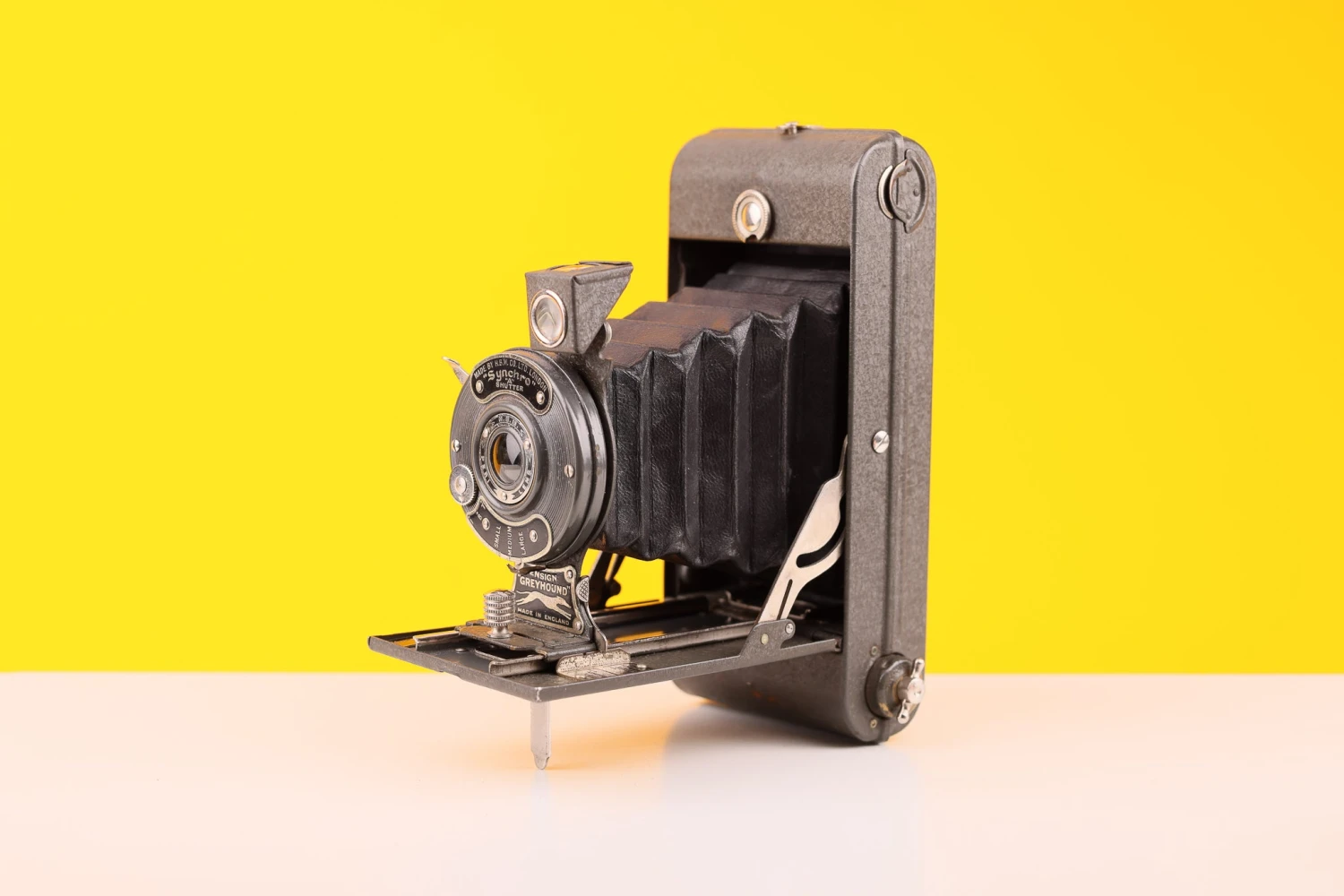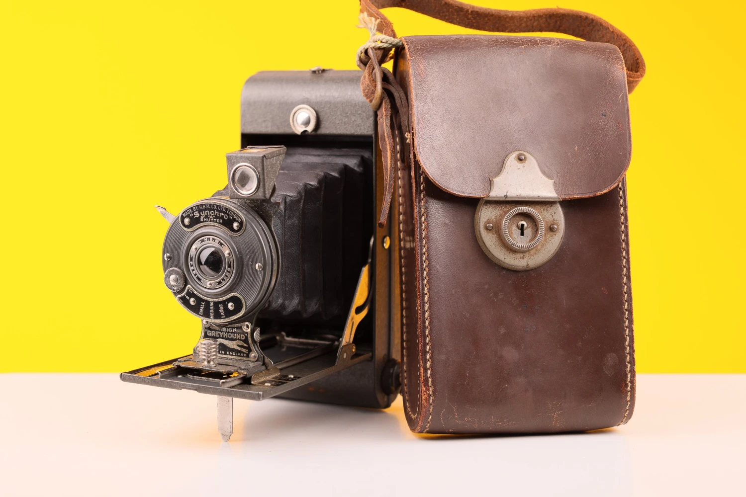 The Ensign Greyhound is a classic, medium-format folding camera that uses 120 roll film and was produced by the Ensign company in the mid-20th century. It’s a notable example of a compact folding camera, designed to be portable while delivering high-quality photographs in the 6×9 cm format