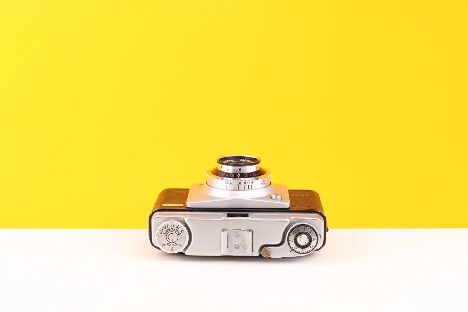 A zone focusing camera with aperture choices from f3.5 – f16