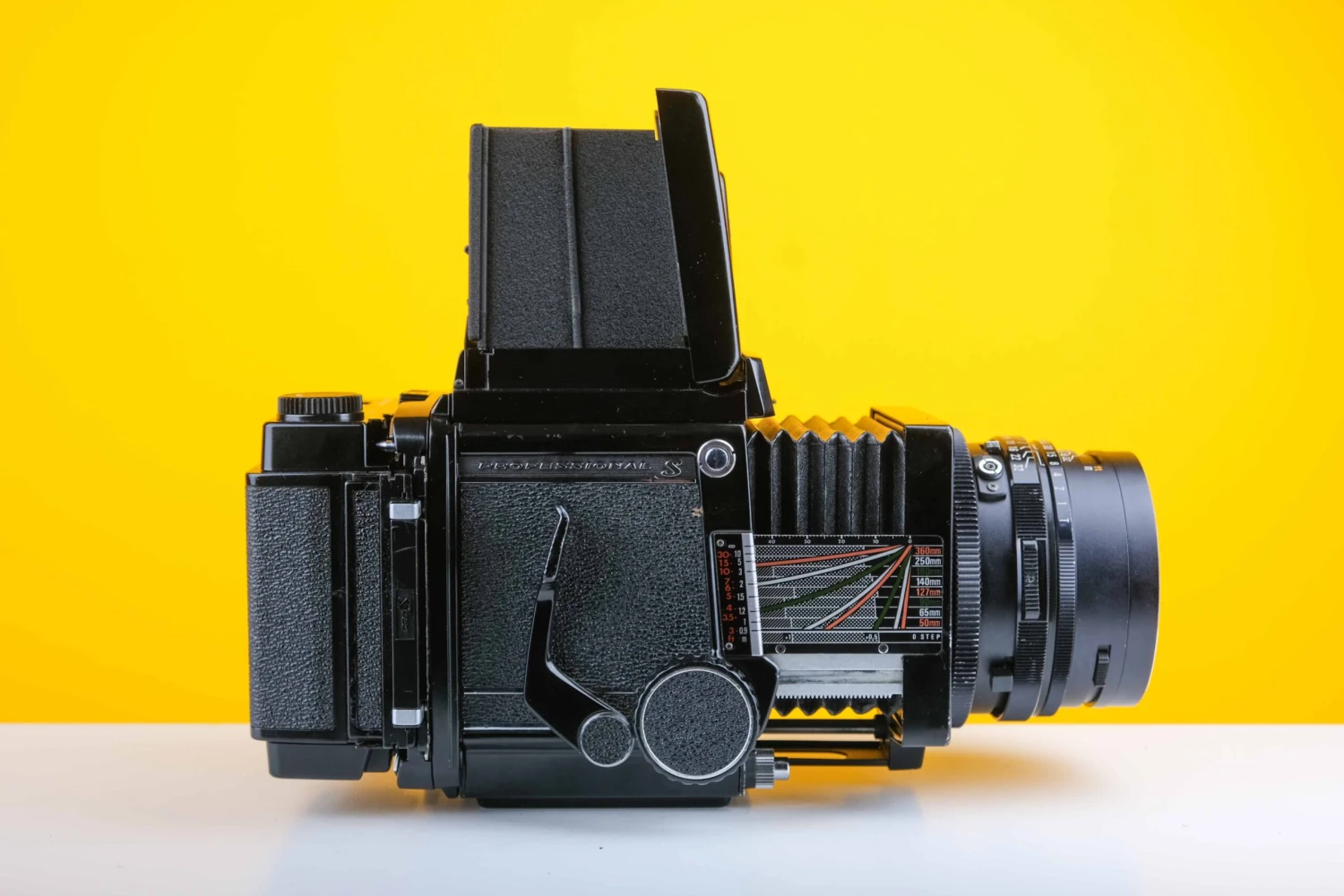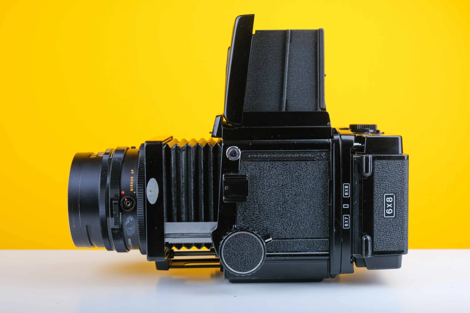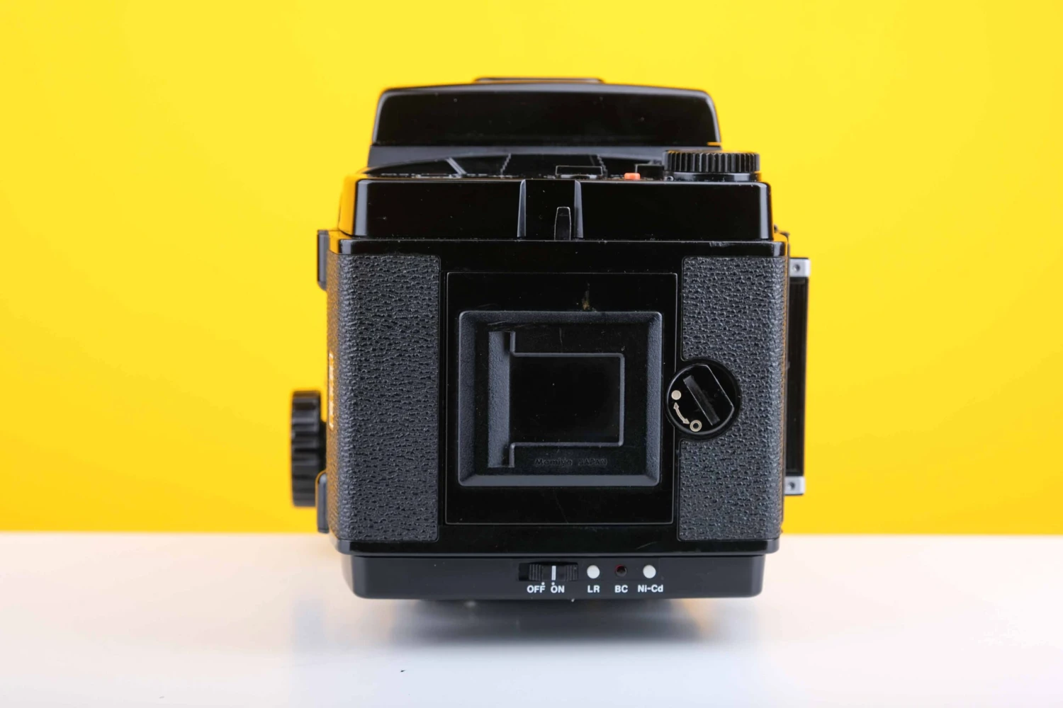 - The camera has interchangeable film backs configured for exposures of 6x7cm or 6×4.5cm. Special-purpose film backs allow for motorized operation, 6x8cm exposures, or use of 70 mm film or Polaroid film.