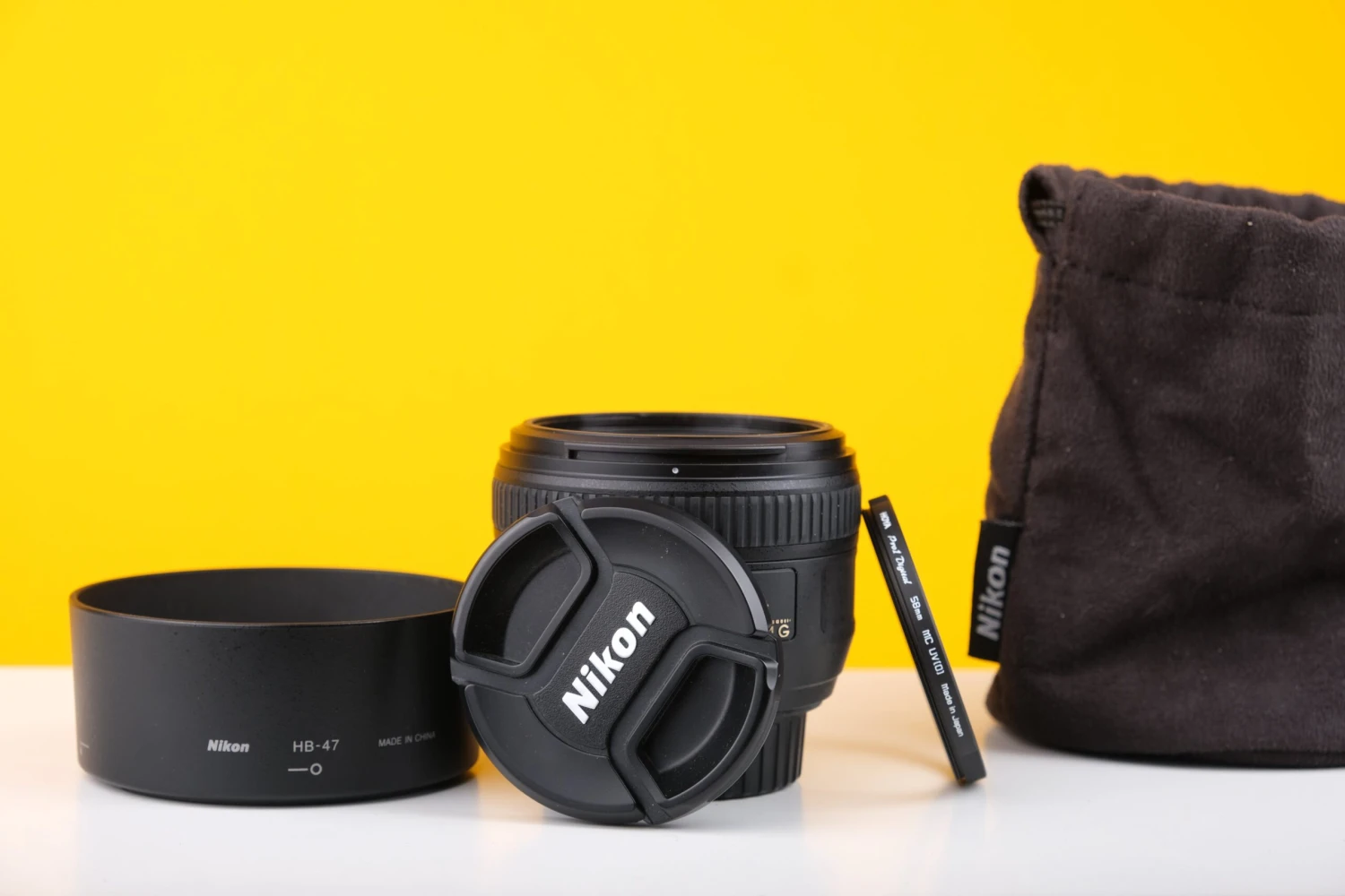 Comes with original case, lens hood, lens cap and Uv filter