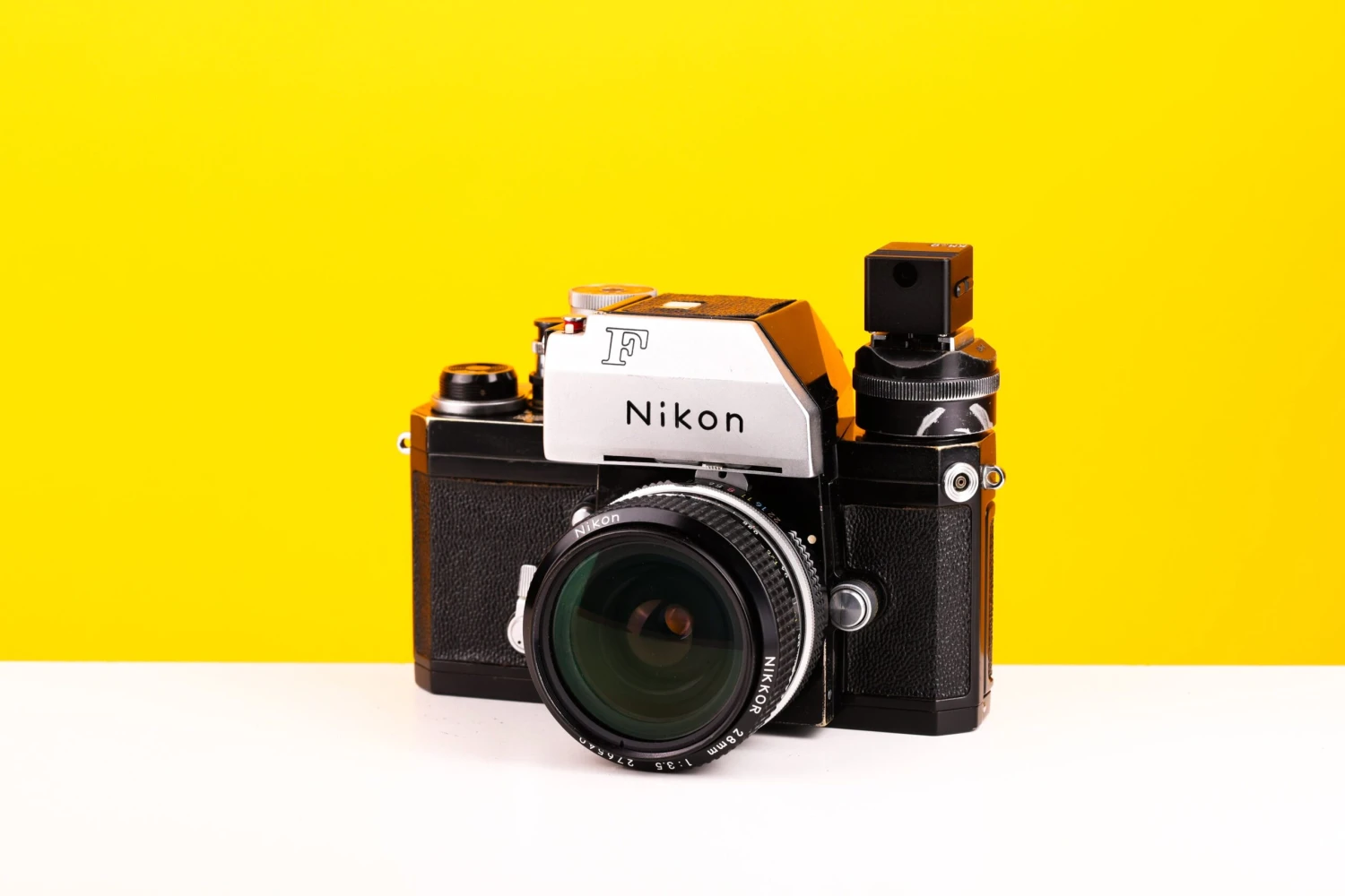 TESTED AND FULLY WORKING: Nikon F Photomic 35mm SLR Film Camera with Nikon Nikkor 28mm f3.5 Lens and KM-Q Light Meter Attachment