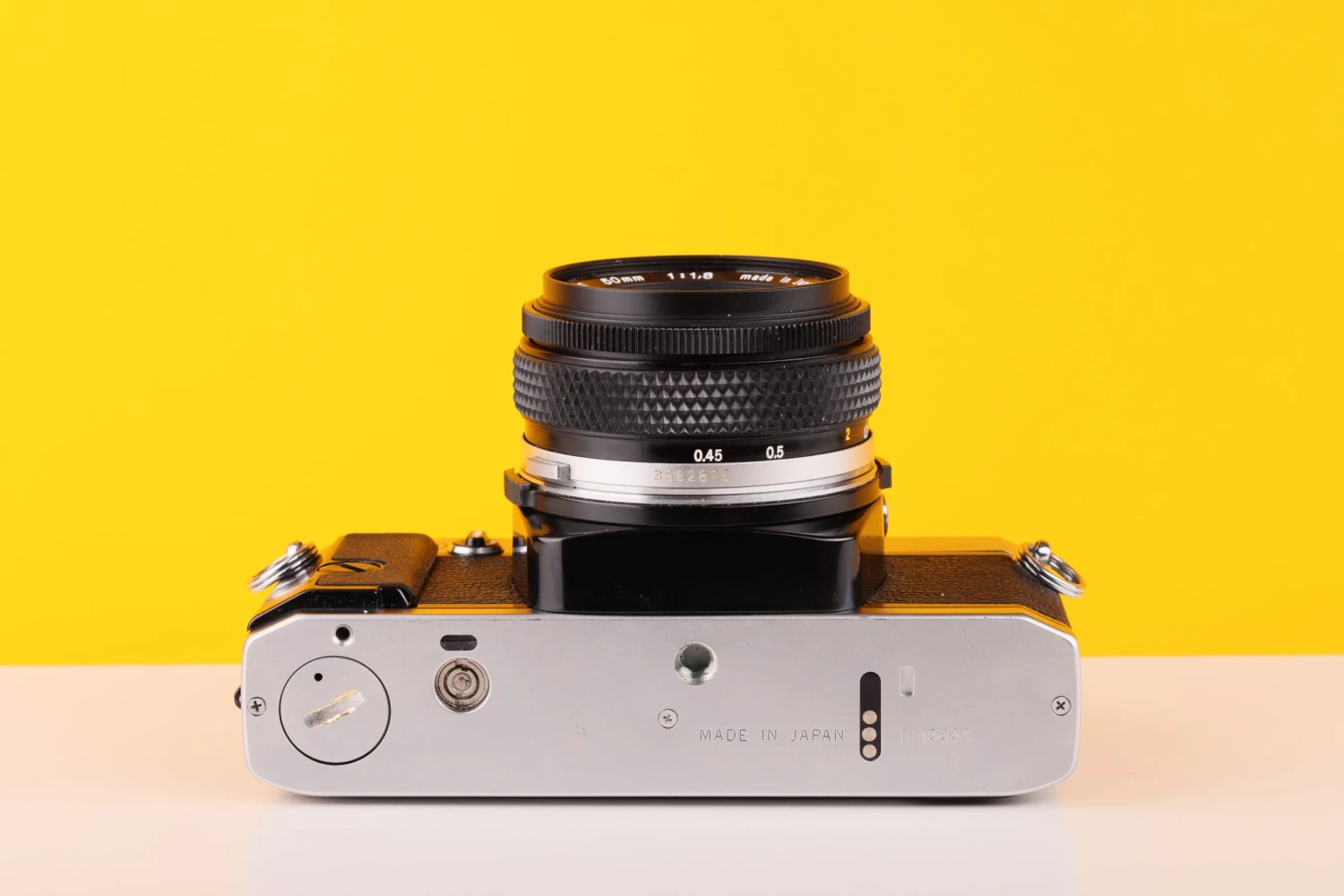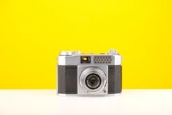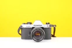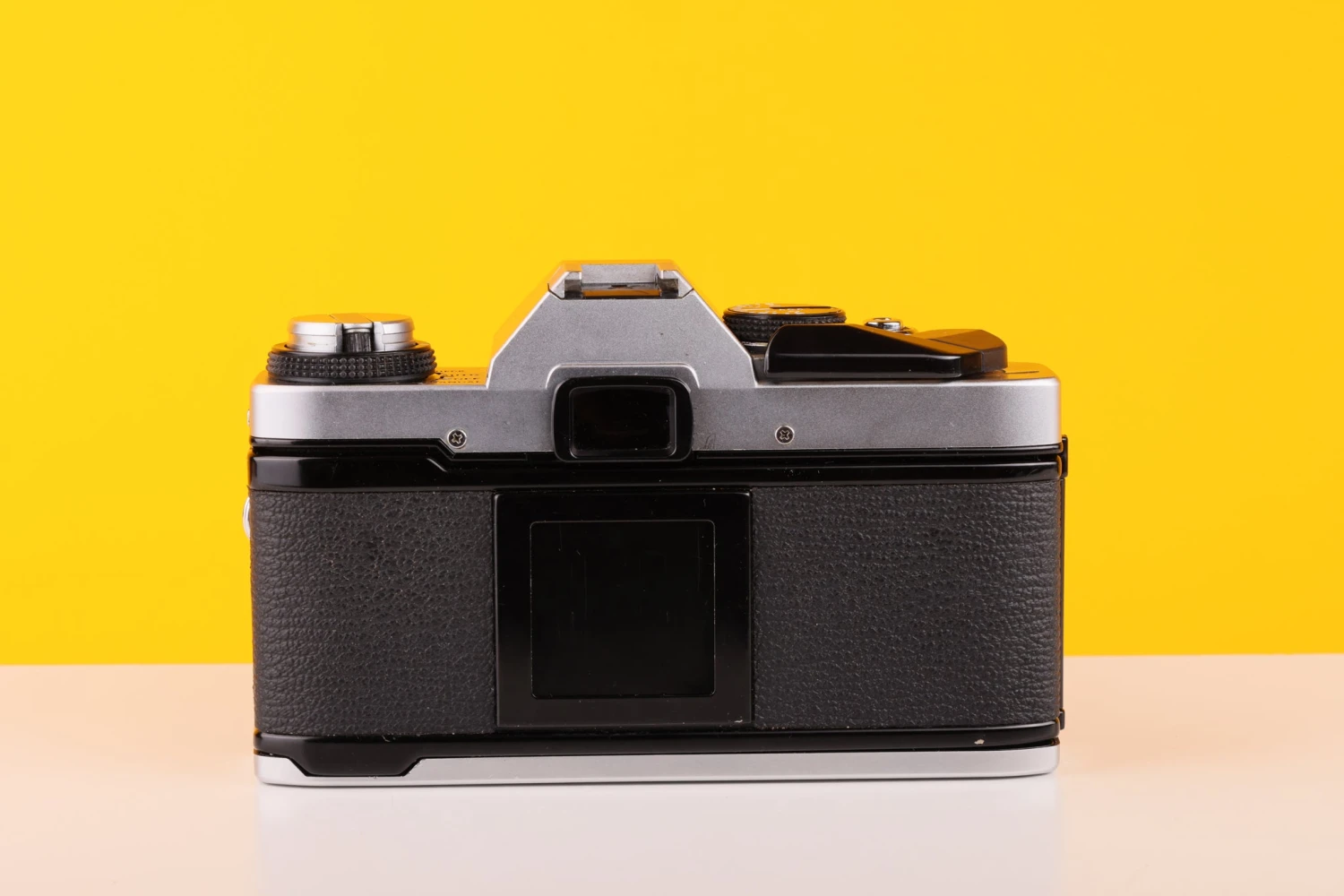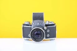- featured a PC-sync flash connection, [LED] warnings in the viewfinder, built-in manual metering, and provision for attaching a steady grip.