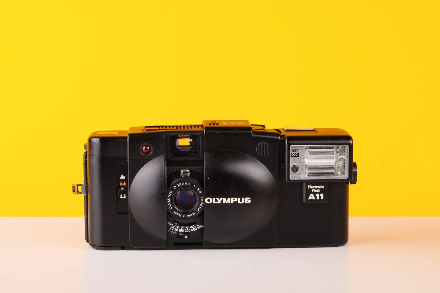 - It had a four-elements-in-four-groups Zuiko 35mm f:3.5 lens.