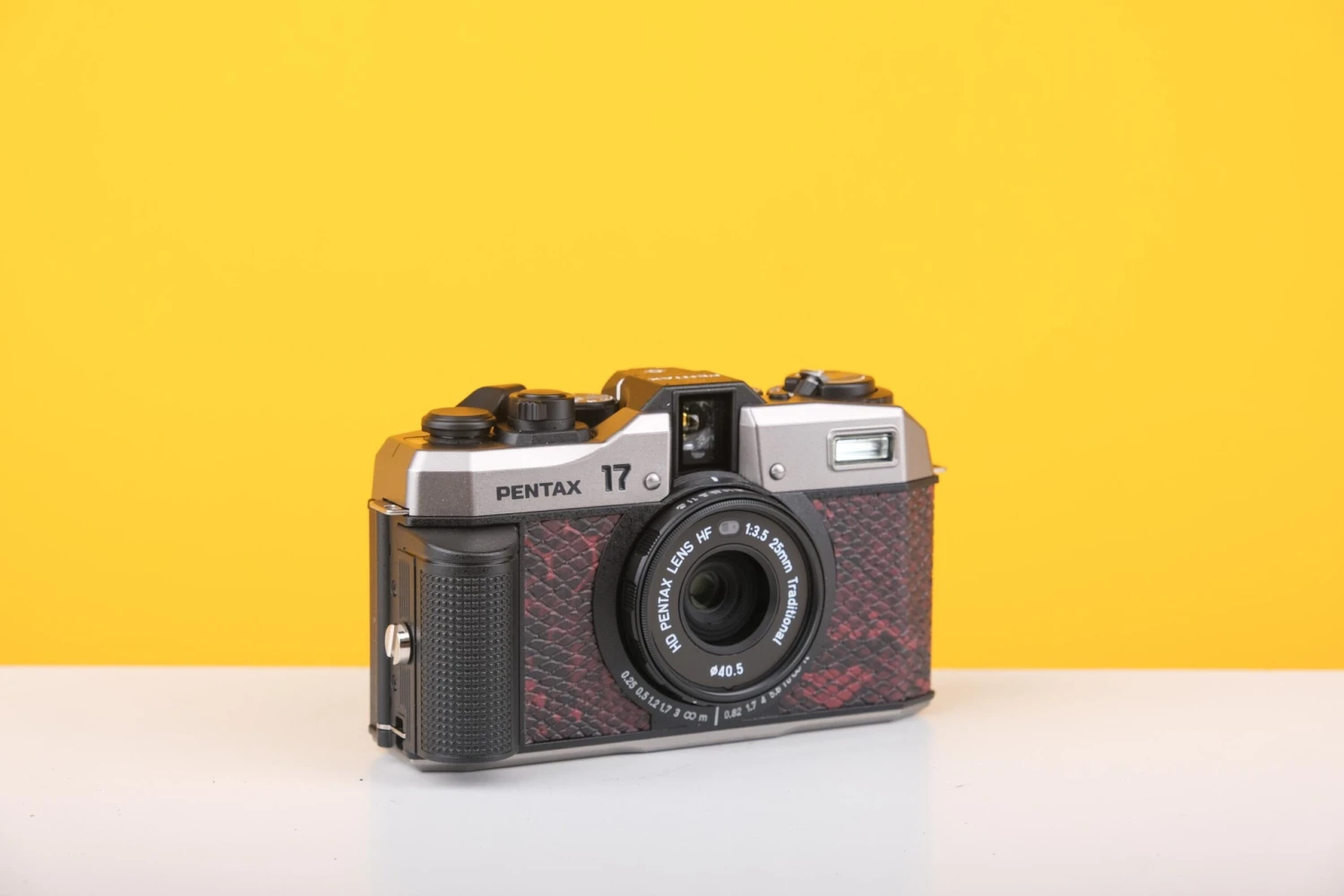 - The PENTAX 17 features the half-size format, in which two 17mm x 24mm pictures are captured in a single 35mm-format frame (36mm x 24mm). It also employs a horizontal film advance mechanism. When positioned in the normal way, it captures vertical-format pictures, identical to the familiar images captured by smartphones, which are commonly used today for picture-taking