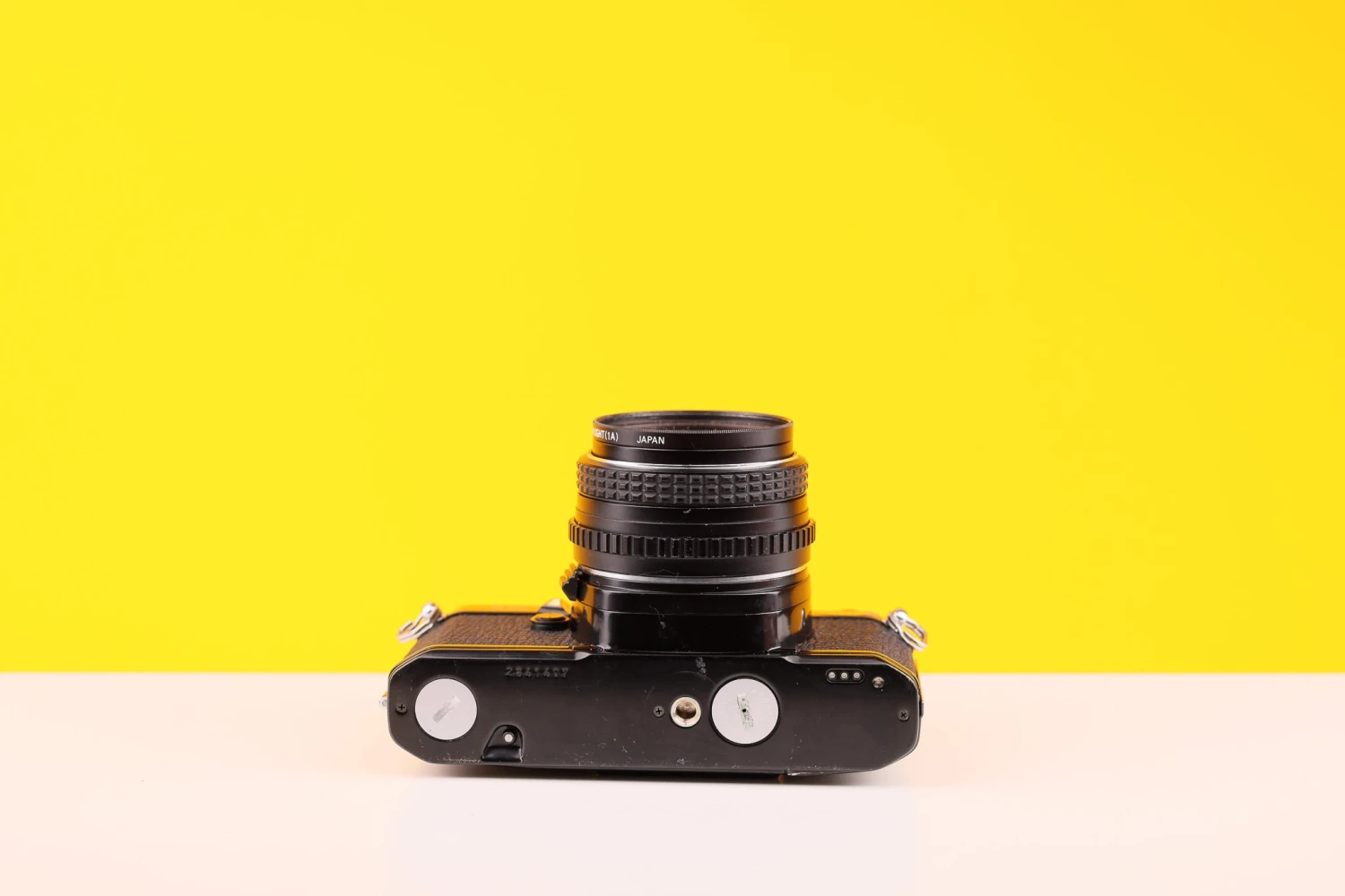The Pentax MV1 is an aperture priority automatic camera, with an electronic focal plane shutter from 1s to 1/1000, synchronized at 1/100. The shutter curtains are metal and have a vertical movement. There is no shutter dial, and the camera cannot be used in manual mode, except for B and 1/100 exposures. The exposure meter is of the standard TTL open aperture center weighted type. It is activated by a slight pressure on the release summary.