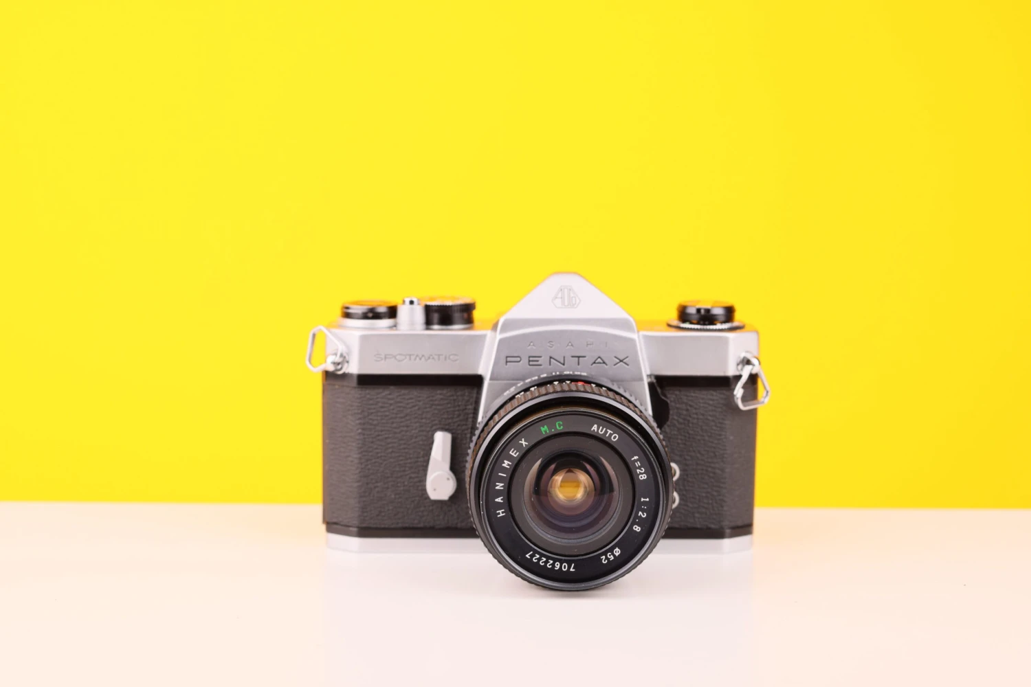 TESTED AND FULLY WORKING: Pentax Spotmatic SP 35mm SLR Film Camera with Hanimex M.C. Auto 28mm F2.8 Lens
