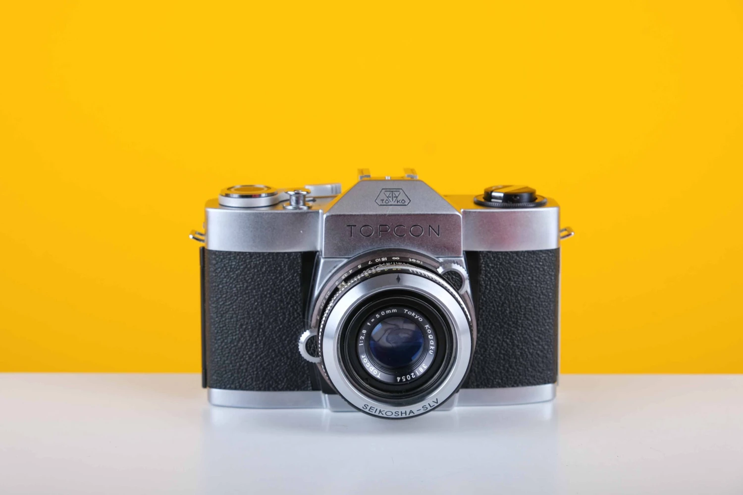 TESTED AND FULLY WORKING: Topcon PR 35mm Film Camera with Seikosha-SLV 50mm f2.8 Lens