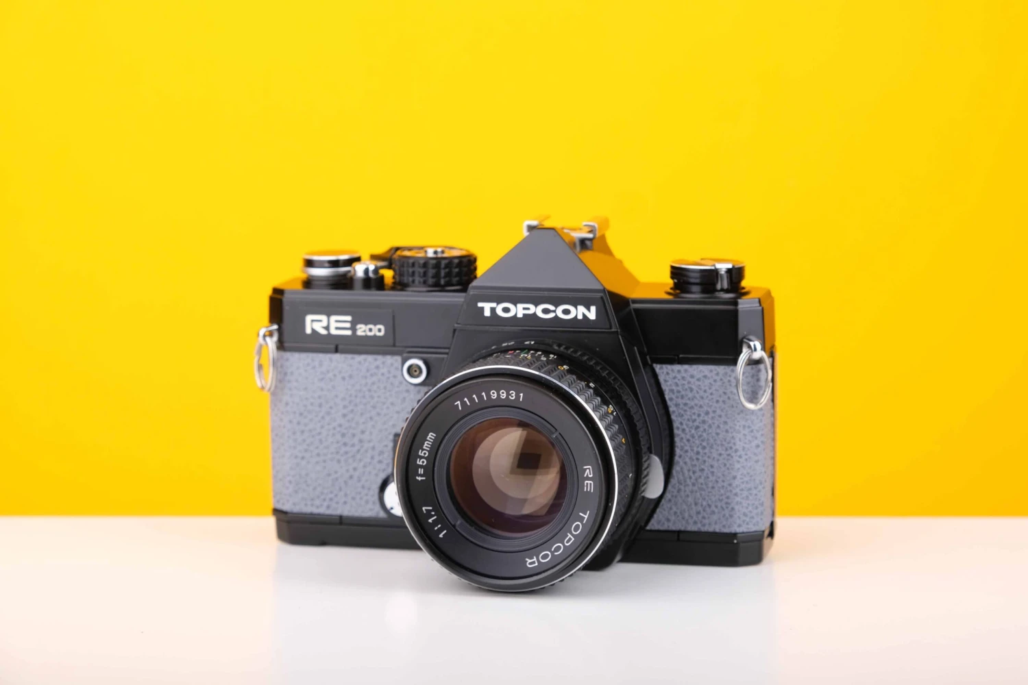 TESTED AND FULLY WORKING: Topcon RE 200 35mm SLR Film Camera with RE Topcor 55mm f1.7 Lens in Grey